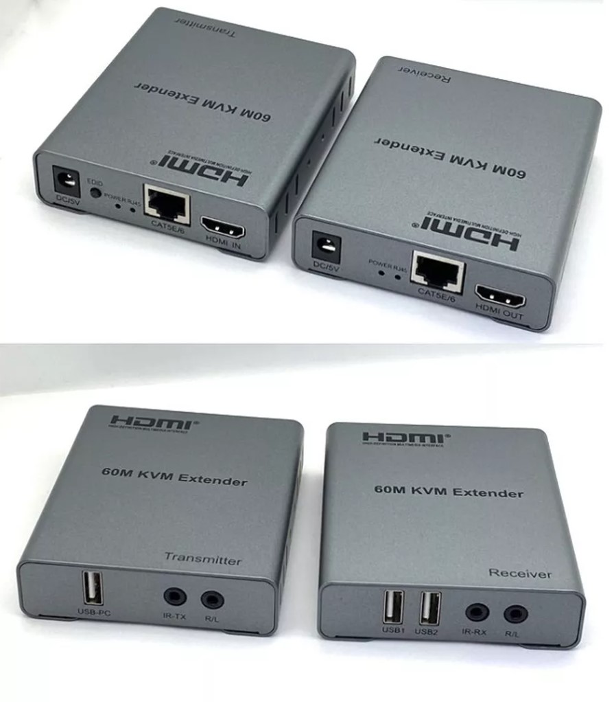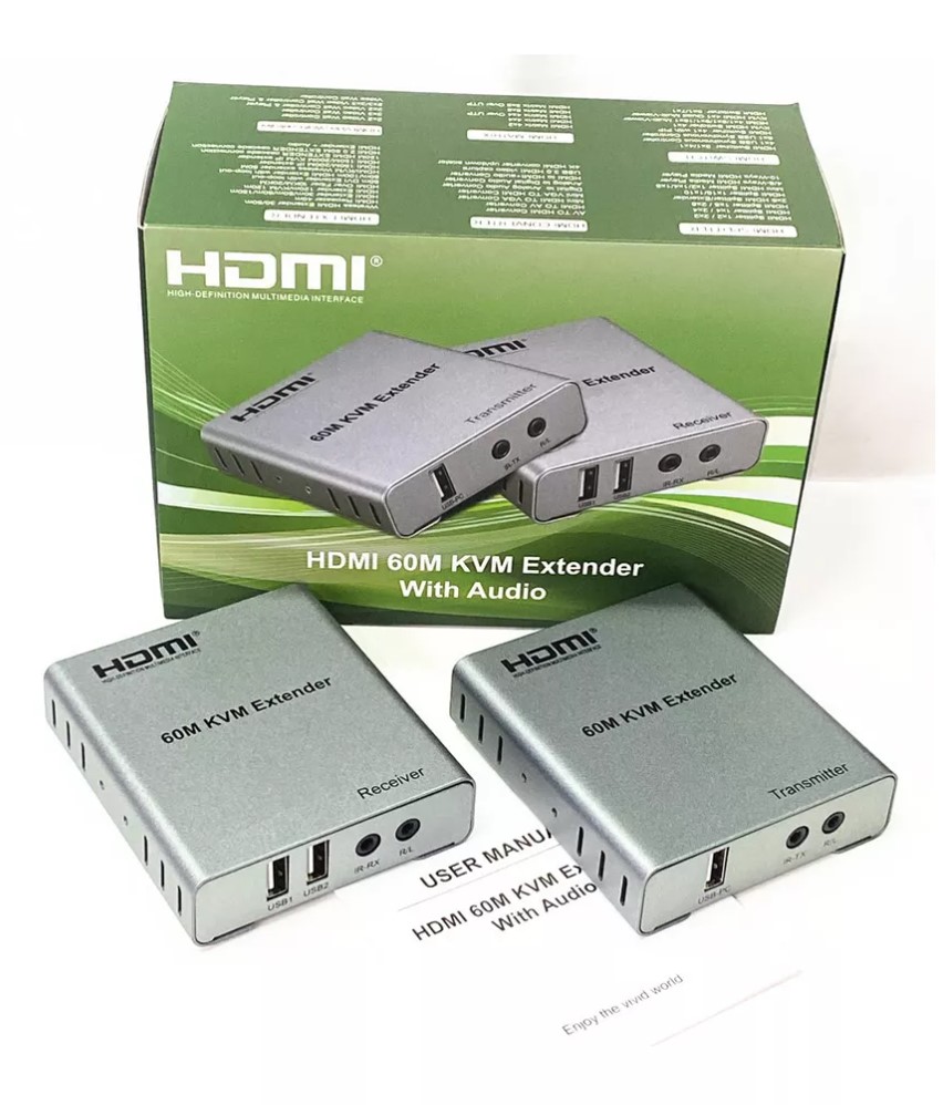 KVM удлинитель HDMI USB на 60 метров по витой паре Cat 6 - 1080p 60 Гц